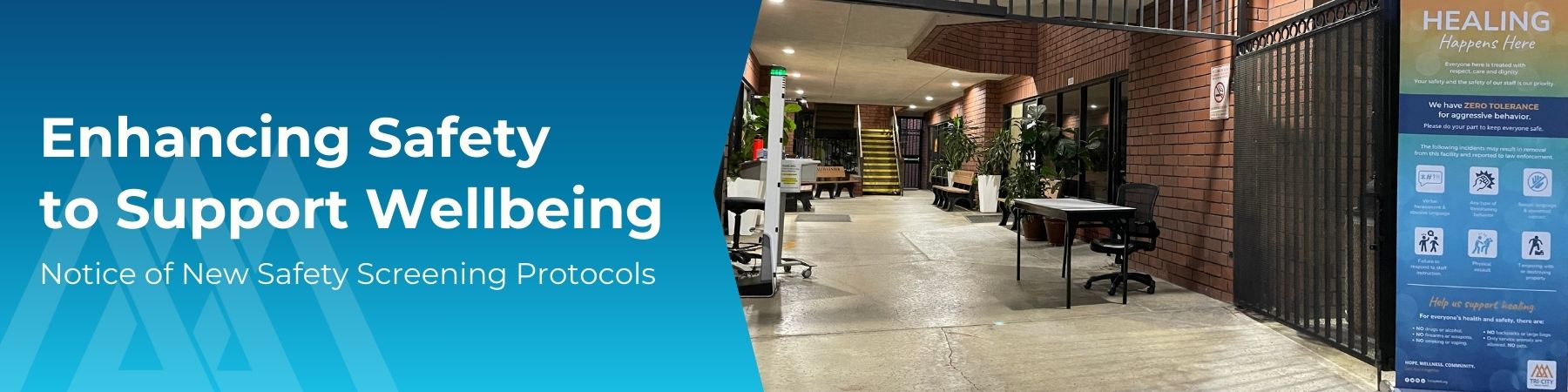 Tri-City Mental Health Authority (TCMHA) is implementing new safety screening procedures across its facilities beginning December 15, 2025, to support a safe and therapeutic environment for clients, staff, and visitors. These new protocols are designed to ensure a calm and supportive atmosphere while minimizing disruptions to the care experience. The screenings will be conducted with professionalism, respect, and efficiency.