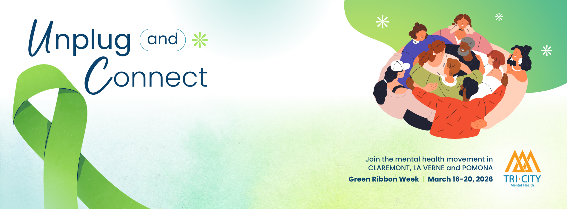 Green Ribbon Week (March 16-20, 2026) is Tri‑City Mental Health’s annual stigma‑reduction campaign, part of our ongoing commitment to supporting mental wellness in Pomona, Claremont, and La Verne. Since its launch in 2015, Green Ribbon Week (GRW) has encouraged our community to learn about mental health, challenge stigma, and uplift one another through connection, compassion, and awareness.